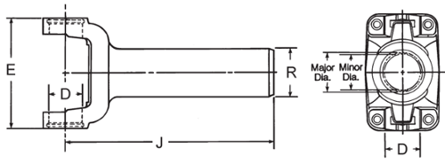 Slip/Sleeve Yoke Assembly, PTO / Transmission, 1350 Series, 31/32 Spline With 1.378" Major Diameter, D= 1.188" E= 3.875" J= 6.938" R= 1.886"